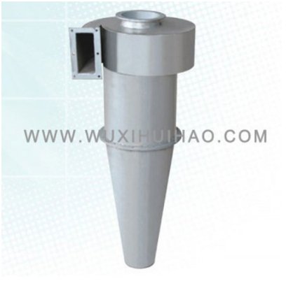 其工作原理就是将高速气流导入分离器,形成高速旋转,在离心力作用下,粉体物质沿着板壁滑下,气体再螺旋上升进入下级处理设备.
