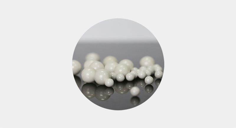 以高纯氧化锆(纯度 99.8%以上)为主体,以 3mol%氧化钇为稳定剂,形成的稳定的四方相结构,用于电子浆料、陶瓷粉末、磁性材料、电池原料、稀土材料、非金属矿、颜料、油墨、油漆、重钙、钛白粉、农药、食品医药原料等作高效、洁净和经济的分散和研磨。