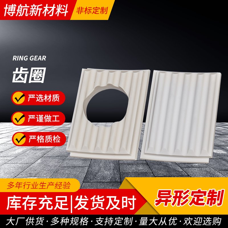 99氧化铝具有耐磨蚀性、机械强度、硬度和耐磨性,还用于各种机械部件。陶瓷齿圈,陶瓷衬板,陶瓷管道,氧化铝导流圈,端盖,密封件等