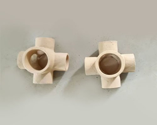 1、球墨铸铁专用耐火材料异性耐火陶瓷管适用于树脂砂、水玻璃砂、精密、消失模、覆膜砂铸造等铸造高锰钢、合金钢、不锈钢、高铬铸铁、球磨铸铁、灰铁等铸件。 2、流通光滑,耐高温(≥1700℃)冲刷性好。 3、使用方便,直管、弯头、三通之间任意用接头连接。 4、规格齐全(Φ15-Φ160)直管、弯管、三通管、变径管等六百多种产品。 5、在浇筑过程中,钢水、铁水通过陶管直浇道、横浇道和内浇道,不再直接接触沙面流入模具,可避免铸件冲砂、砂眼、夹砂等缺陷。 6、因为本产品产用优质原材料,高温明火烧制,所以产品成色偏白,更耐火耐高温,质量优于各地区同行业。 7、使用陶管后,浇注系统就不再使用涂料或硫钢砖,可降低成本。 8、陶瓷管抗金属液侵蚀能力大大优于硫钢砖,同比硫钢砖产生废料低,便于清理,提高型砂利用率,省时省人工。