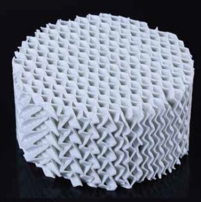 陶瓷波纹填料是一种新型规整填料,它是由许多具有相同几何形状的填料单元体组成。由于陶瓷独特的结构,具有良好的亲水性能,其表面可形成极薄的液膜的湍动及气流的倾斜曲折通道能促进气流但又不阻挡气流使陶瓷填料能与金属填料相匹敌,而其耐腐蚀、耐高温性能金属填料却无法相比。表面结构有良好的湿润性能,能使液体加快流动、使填料滞液量降至*低。从而降低了过热、聚合和结焦的机会。