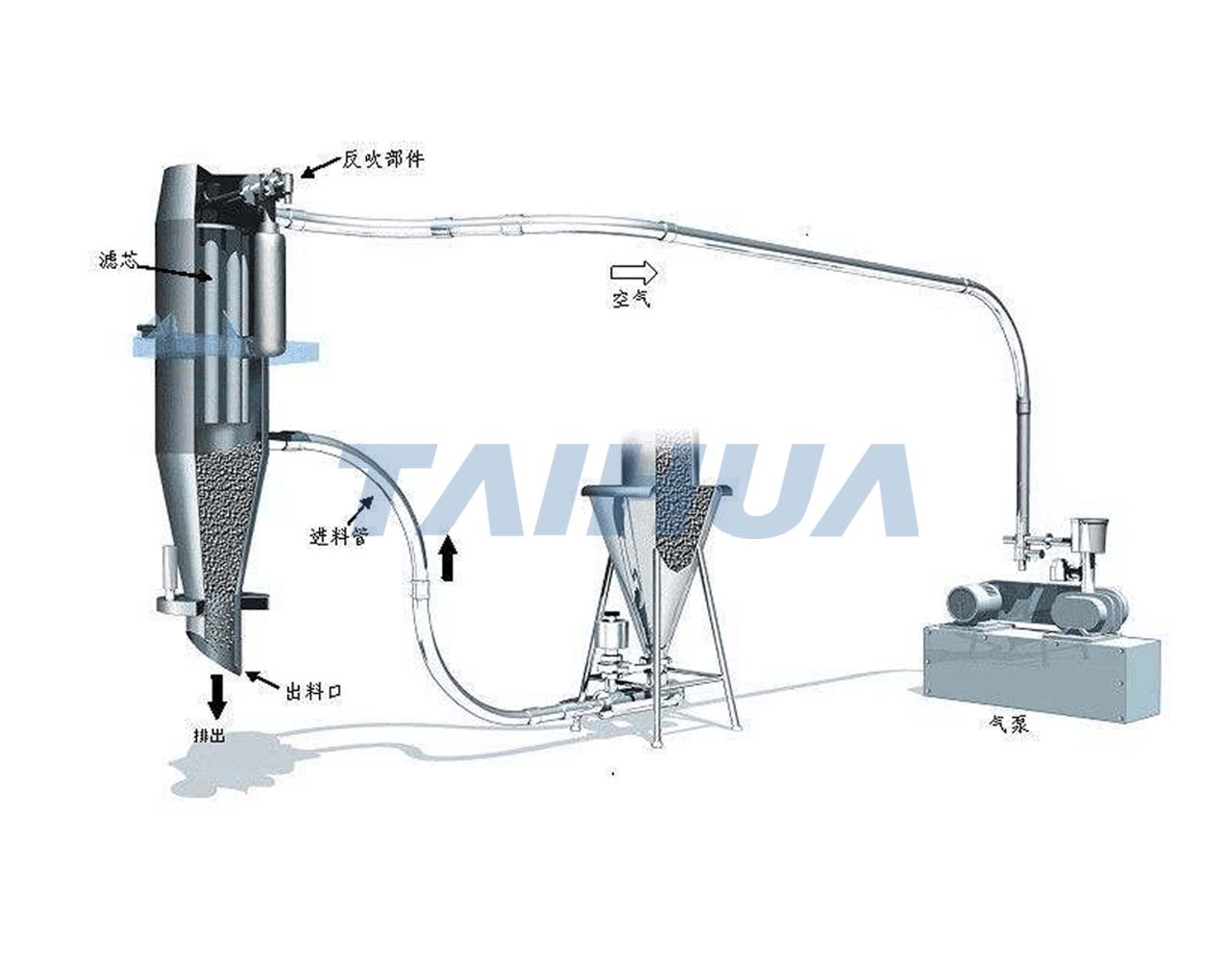 负压吸送泵(也称负压风送系统或负压风运输送系统)是高压离心风机(或罗茨真空泵)产生的真空将散装粉粒体物料用负压气流吸送到指定的容器(料仓),泰华负压吸送式气力输送装置为核心组成的真空负压收集系统,特别适用于短距离、物料温度高、多点卸料的系统中。