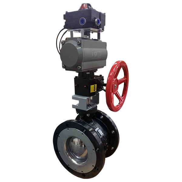气动V型球阀,球芯呈V型状,可实现线性调节,可调范围大。当阀门关闭时。V型缺口与阀座之间产