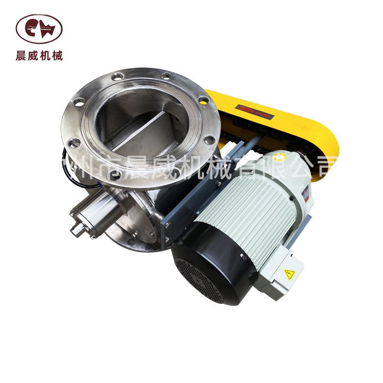 电动旋转给料阀主要用于粉颗状物料的重力给料或气力输送系统中,采用电机作为驱动装置,阀体内装有叶轮,通过叶轮的旋转来均速,定量给料,另外设计精密的旋转阀也可用作关风机,或者叫锁气旋转阀.法兰连接,一般采用不锈钢与碳钢材质.