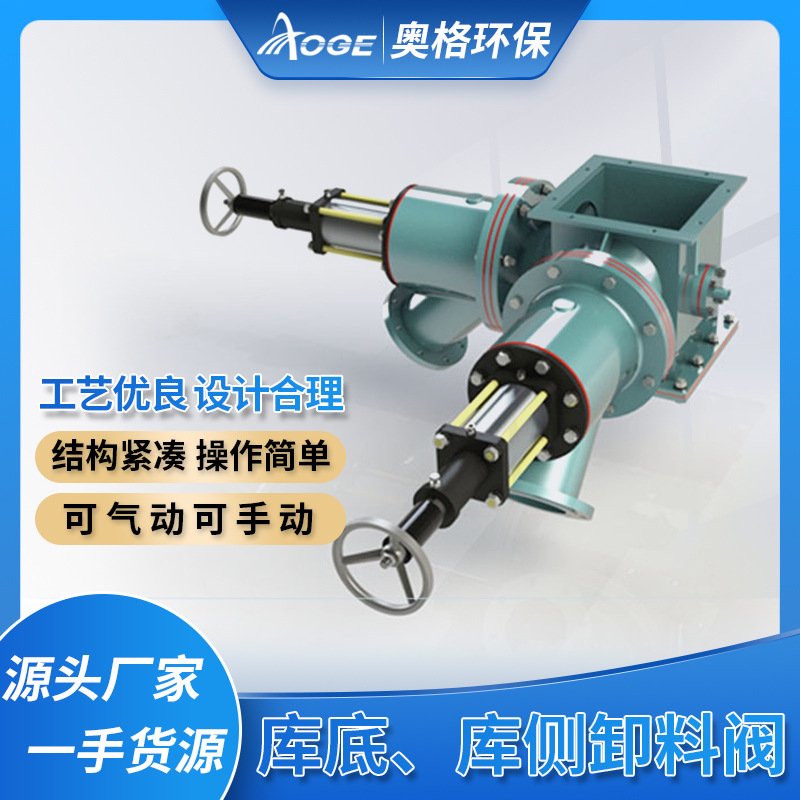 该设备用于粉料贮仓底部或侧面卸料用,设备带有流化装置,卸料时能使物料流态化排出,通过输送管道或斜槽,配合散装机直接装料,该系统有气动和手动两种控制方式,气动用电磁阀控制气缸伸缩运动,实现卸料阀门的启闭:手动为转动手轮启闭阀门。