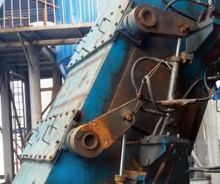 立磨三道锁风阀是用于给立磨喂入物料的装置。**道的作用是截断物料,控制进料量和时间;第二道的作用是锁风;第三道的作用是既锁风又卸料,将物料喂入磨机。因为吞吐量大,阀板磨损非常严重,甚至一两个月就要更换,一线人员工作量非常大。三道锁风阀阀板的磨损会造成系统漏风,出磨温度低,压差过小。对系统的热耗、电耗、产质量、生产稳定运行、生产环境等方面均会带来负面影响。