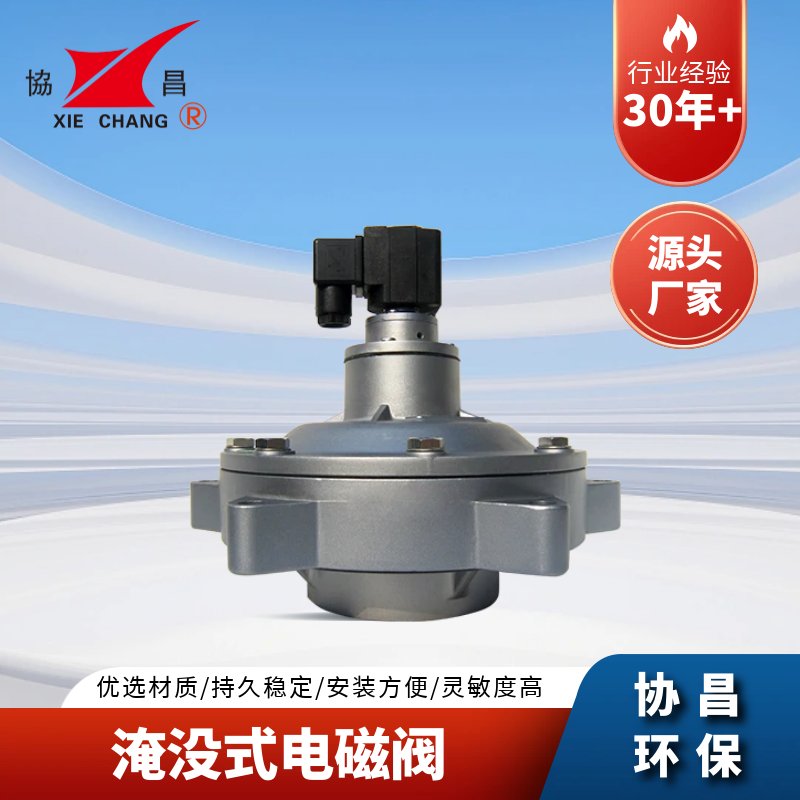 淹没式电磁脉冲阀(又称淹没式电磁阀,淹没式脉冲阀,淹没式阀),即脉冲袋式除尘器清灰系统的喷吹管路阀门。由电控仪控制,进行脉动“冲量”喷吹清灰。与XC—PGQ—Y型喷管连接器配套使用,使用可靠,安装、维修方便。
