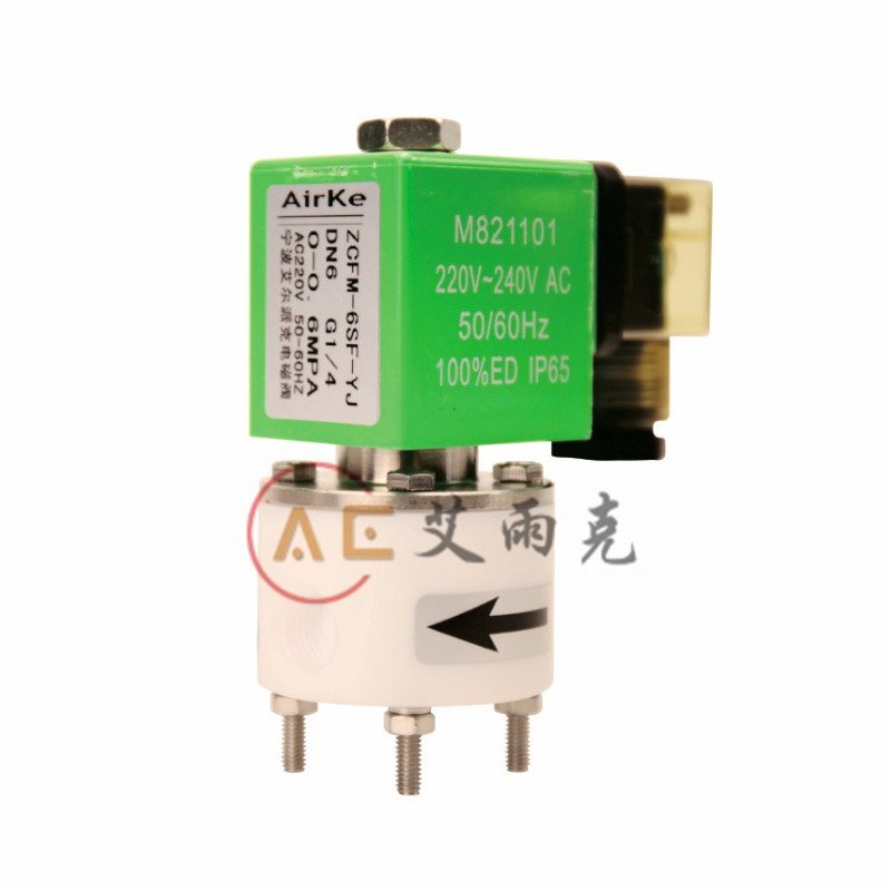 腐蚀性流体与金属部件(动铁芯、弹簧)完全隔绝,即流体只与聚四氟、密封件接触,安现了 结构上真正的耐腐蚀