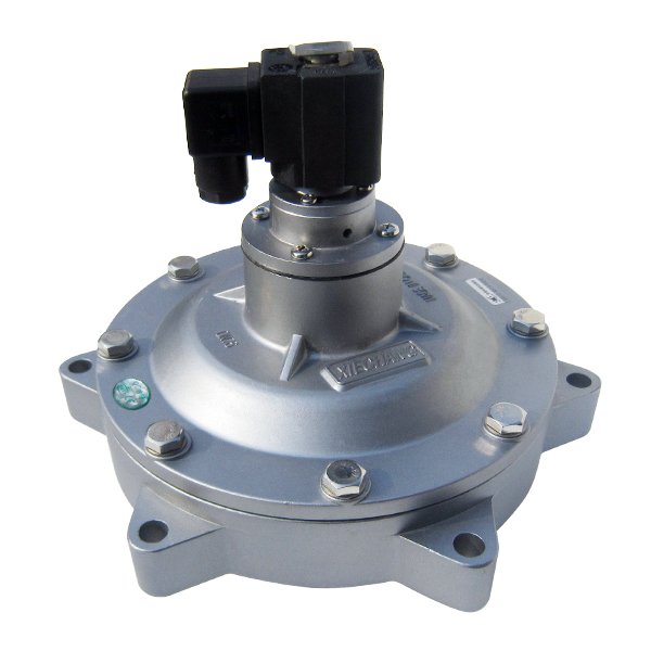 淹没式电磁脉冲阀由电磁先导头、膜片和阀体组成,膜片后腔的面积大于前腔的面积,气压作用力大,使膜片处在关闭位置。