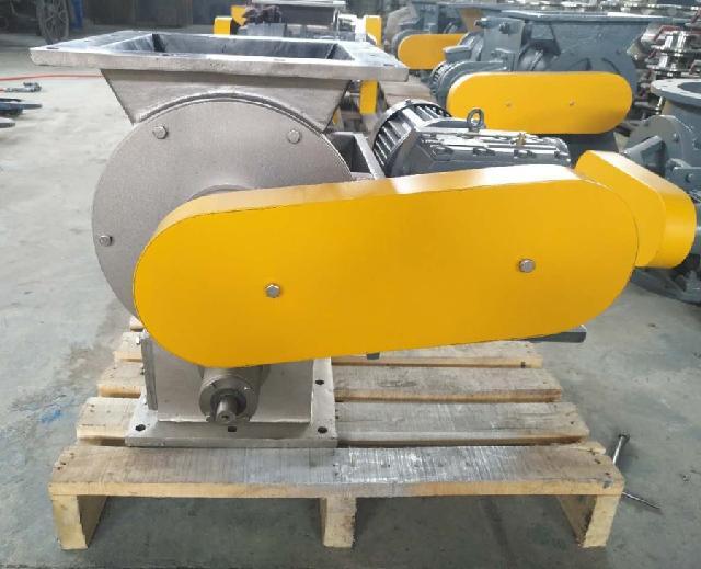 旋转卸料阀俗称叶轮给料机、星型给料机、锁气器、旋转供料器、关风机等,它是由带有数个叶片的转子、壳体、密封件及电动机、减速器等组成。当转子在圆筒形的机壳内旋转,从上部料斗靠自重落入的物料,充塞在叶片间的空格内,随转子的旋转到下部而卸出,从而实现均匀而连续的输送物料。