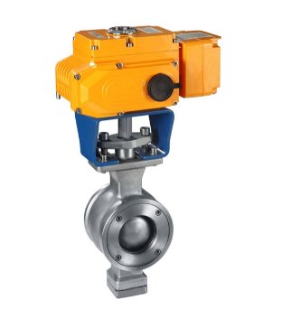 1、电动V型球阀的V型切口的球芯与金属阀座之前具有剪切作用,特别适用于含纤维、微小固体颗粒、料浆等介质。