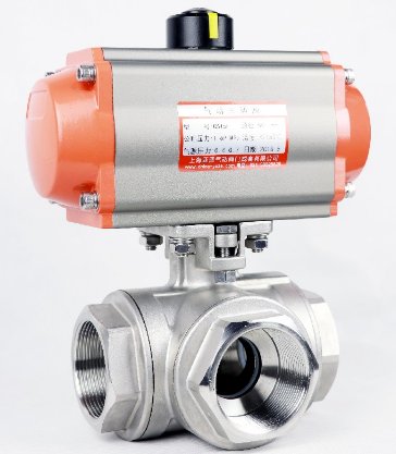 气动三通球阀由内螺纹三通球阀和气动执行器组成,体积小,结构简单。分为L型、T型,能实现:换向、分流、合流、混流作用。四阀座密封三通球阀具有造型美观、结构紧凑合理,它不仅可实现介质流向的切换,也可使三个通道相互连通,同时也可关闭任一通道,使另外两个通道连通,灵活控制管路中介质的合流或分流。