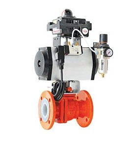 气动调节/切断衬里O型球阀(气动衬氟球阀)是由气动执行机构,衬里球阀和定位器(电磁阀)组成,接受4-20mADC或24VDC控制信号,对工艺管路的介质实现比例调节或二位开关控制。它是一种旋转类的防腐蚀球阀,与流体接触的阀体内壁和金属阀内件均衬一层防腐蚀材料,具有极强的耐腐蚀性能,用于控制强腐蚀性介质流体,与执行机构连接尺寸符合ISO5211标准,可方便与各种气动执行机构配套,结构简单、性能优越、维修方便、安全可靠。