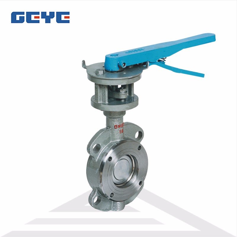 手柄硬密封对夹蝶阀采用的是三维偏心原理设计,使密封面的空间运动轨迹达到理想化,密封面相互之间无磨擦、无干涉,加之密封材料选择得当,从而使蝶阀的密封性、耐腐蚀性、耐高温性和耐磨性等得到了可靠的保证。