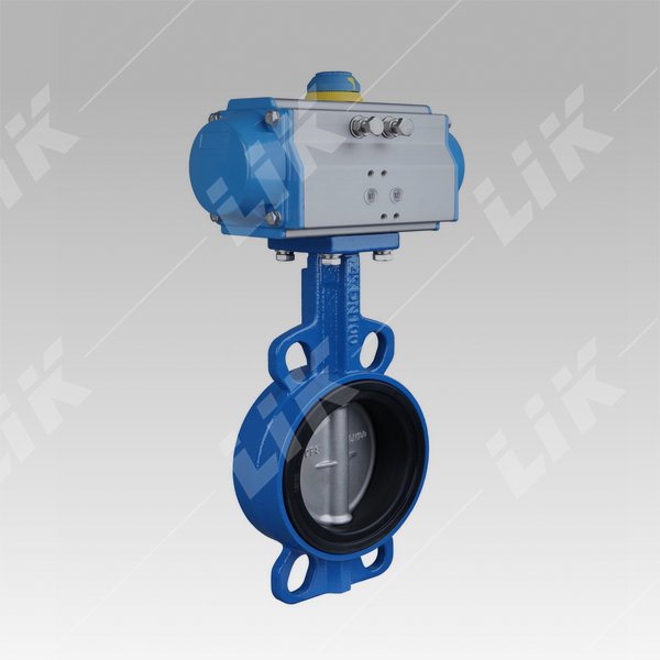 进口气动蝶阀有开关型和调节型二种,蝶阀配行程限位开关、电磁阀、三联件及0.4-0.7MPa气源可实现开关操作,并送出二对无源触点信号指示阀门的开关。采用智能控制与定位时,与国产电气阀门定位器配套,输入4-20mADC信号及0.4-0.7MPa气源即可实现智能控制,实现对压力、流量、温度、液位等参数的调节。它是以压缩空气为动力,阀杆带动阀芯在阀体内转动90℃,可以实现全开--全闭的动作