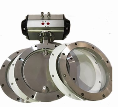 TDJ卫生级对夹式气动蝶阀对夹阀连接形式:法兰圈+垫圈+对夹阀+垫圈+法兰圈