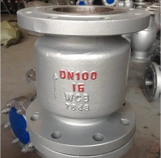 H42H铸钢立式止回阀一般就安装在垂直管路。安装箭头标向上,使用介质从下往上冲开阀瓣,介质流通。当介质停止时,阀瓣靠自身重量落下使得阀门关闭,也可通过回流介质阀瓣向下关闭。