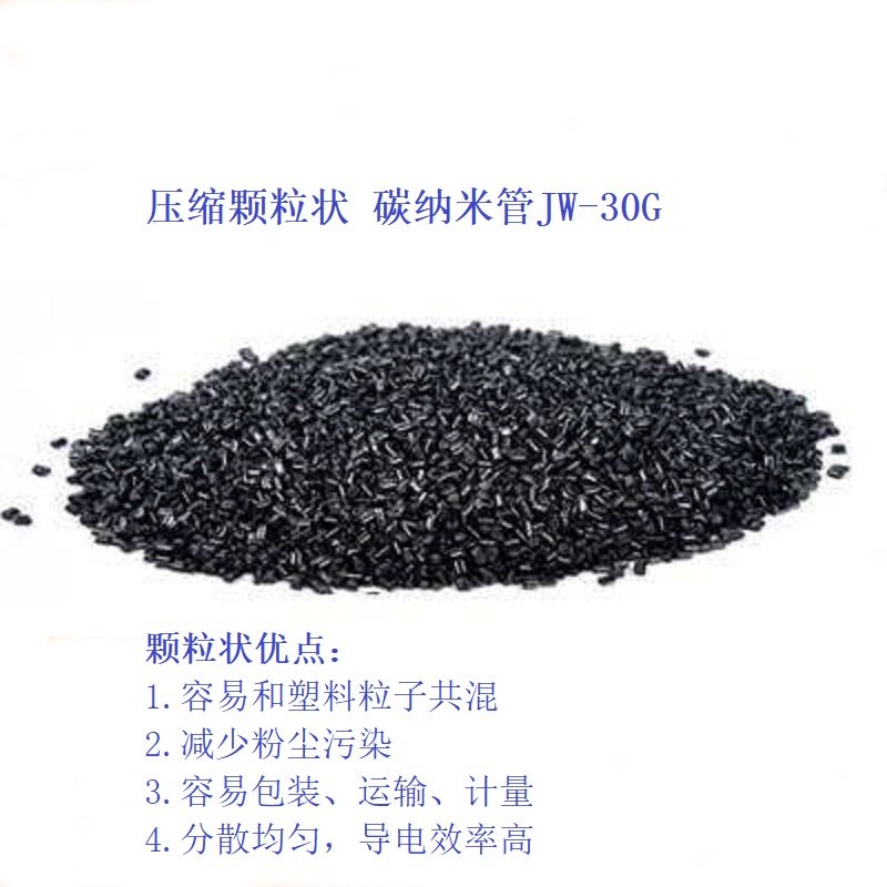 压缩颗粒可以减少粉尘污染。不含任何载体,纯碳管挤压成颗粒状,添加到材料里面可以在外力作用下会再次破碎成粉体。