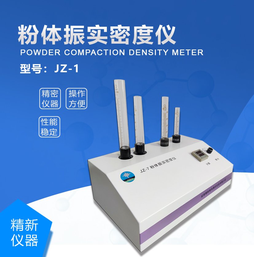 JZ-7型粉体振实密度仪,配置250mL的玻璃大量筒(量筒分刻度精确至2mL),振动幅度为25mm±2mm,广泛应用于农药等行业的粉体振实密度测试。