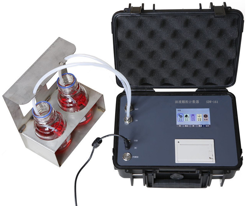 便携式颗粒计数器SDW-161型是采用国际液压标准委员会指定的光阻(遮光)法计数原理,专门用于现场油液污染度等级快速检测装置。具有体积小、质量轻、检测速度快、精度高、重复性好等优点,可在高温高压等及其恶劣的条件下工作。内置微水传感器和温度传感器,在进行污染度检测的同时,可对水含量和油液温度一并检测。适用于发动机油、齿轮油、变压器油(即绝缘油)、液压油、润滑油、合成油等油液,可广泛应用于航空航天、石油化工、交通港口、钢铁冶金、汽车制造等领域。