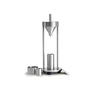● 倒入样品:把空量杯放到天平上清零后放到测试仪下方平台指定区域内,再将阻塞棒垂直插放到漏斗中堵住流出口,把待测粉体倒入测试仪器上方漏斗中。