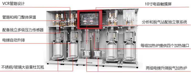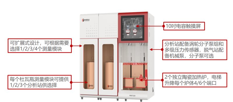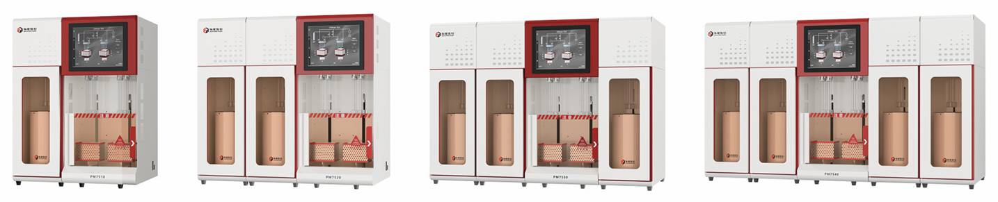 PhysiMaster 7500系列(PM7500)BET全自动扩展式微孔物理吸附仪配有独立的8/12站式脱气站,仪器可以提供1/2/3/4个杜瓦瓶供测量模块供选择,每个杜瓦瓶测量模块1/2/3个分析站供选择,测试软件支持自定义压力点个数和位置(吸、脱附压力点个数*多可设1000个),提供多种数据处理模型。