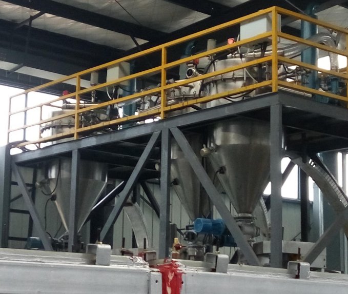 系统特点: 1、粉体物料在完全密闭环境下完成处理,无粉尘飞扬,能有效的防止粉尘爆炸。 2.每个配料罐都有独立的进料器和计量装置; 3.通过双蝶阀、组合阀、平移阀、螺杆、压力传感器等计量设备达到精确配料的目的; 4.可实现多种物料的配料计量混合; 5.计量精度 0.2%左右(根据物料特性),保证了投料的准确性; 6.投料距离:水平*远 100 米,垂直** 35 米; 7.系统采用全自动化控制,PLC 人机操作界面,可实现远程控制;生产过程实现全程控制和监测。 8.有效保存配料计量的数据参数,自动备份可防止数据的丢失; 9.系统结构紧凑,粉碎、输送、计量配比、混合一体化设计,节约空间。