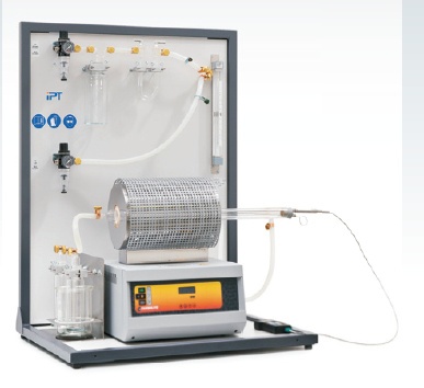 整个结构安装在一块固定板上,紧凑稳固,操作方便,便于试验人员在不同位置的操作。产品由管状高温炉,玻璃器皿,气体排入,排放硅管, NiCrNi温度测量探头,温度调整和温度显示装置组成。