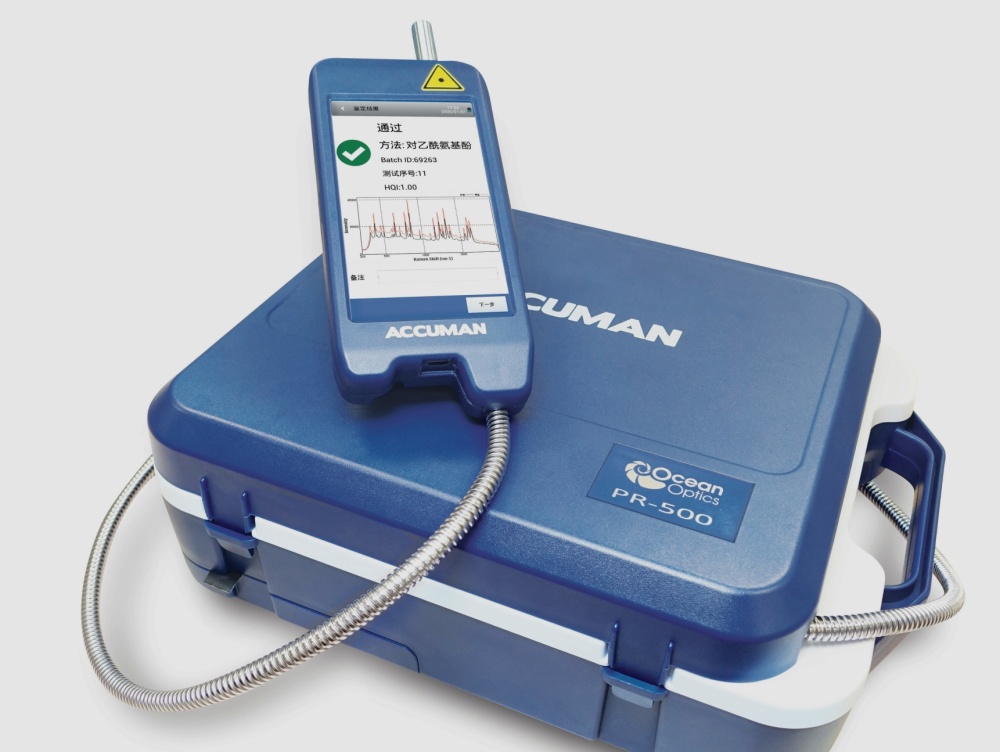 海洋光学新一代便携式拉曼光谱仪ACCUMAN PR-500,可以帮助制药企业以较低成本从容应对原辅料“证实”和“伪证”的鉴定。