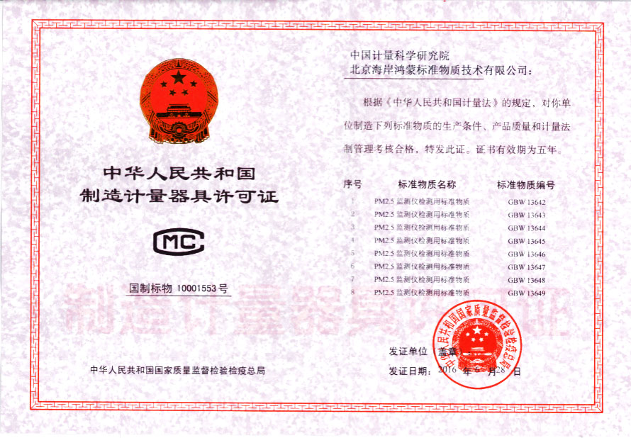 量值信息:空气动力学粒径:3.0μm±0.25μm