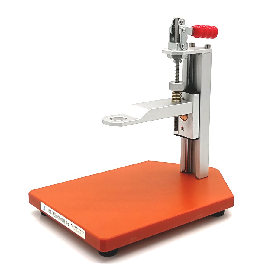 2.2压力调整:在探头压下的状态下,可根据样品厚度及压力要求,调节测试台导轨支架中部螺杆上的螺母(先松开锁紧螺帽),观察探头探针压下程度,调节测试压力!(弹簧压缩量0~20mm,探针缩进量0~4mm,对应探头压力0~2.0K公斤),调好后,锁紧锁紧螺帽。