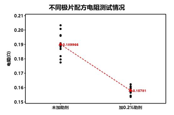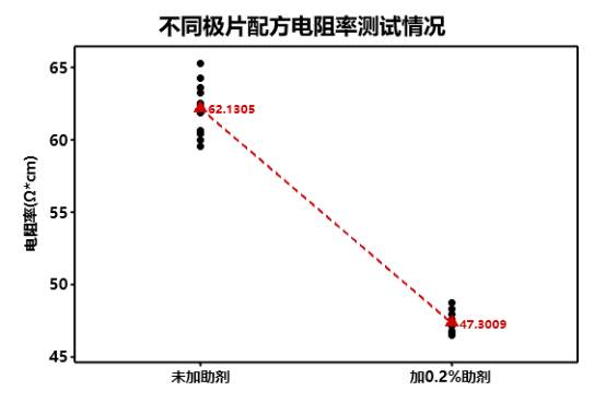 在浆料配方的开发过程中,将制备好的极片进行检测,得到极片电阻率参数,提前对配方进行相应的分析,能提前预测电芯的性能,极大提高了研发效率,降低成本。