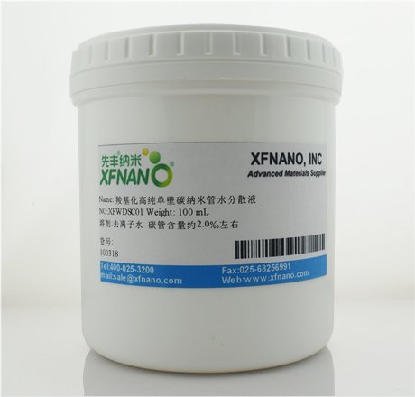 羧基化高纯单壁碳纳米管分散液所用原料为XFS04羧基化高纯碳纳米管 碳管含量约0.2wt% 左右.高浓度可以定制。