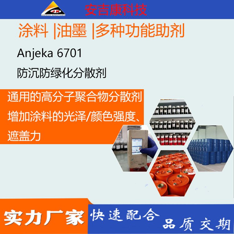 产品包装提供了 25kg 内涂铁桶和 200kg 环塑料桶两种规格,企业可根据自身生产规模和需求灵活选择。ANJEKA-6701 凭借其出色的性能,为溶剂型涂料和油墨行业提供了可靠的添加剂选择,助力企业提升产品质量,增强市场竞争力。
