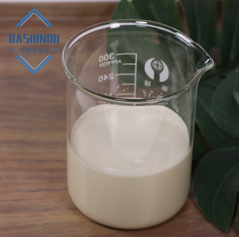 达西浓自主生产的导电氧化锌分散液是一种具有优异导电性能的水性分散液,主要成分是导电氧化锌。这种分散液不仅导电性好,而且添加量少,涂层表面电阻可达105Ω·cm1。其外观为奶黄色液体,固含量为30%,粒径在200-300nm之间