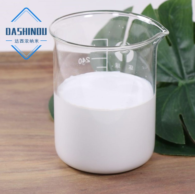 达西浓自主生产的导电用钛白粉分散液是一种米白色液体,是我公司采用国际先进的分散工艺,将纳米二氧化钛粉体(5-30nm)分散在水相介质中,形成高度分散化、均匀化和稳定化的纳米二氧化钛水性透明分散液。分散液具有纳米粉体料的特性外,还具有更高的活性、易加入等特性。 极大地发挥了纳米材料的作用。