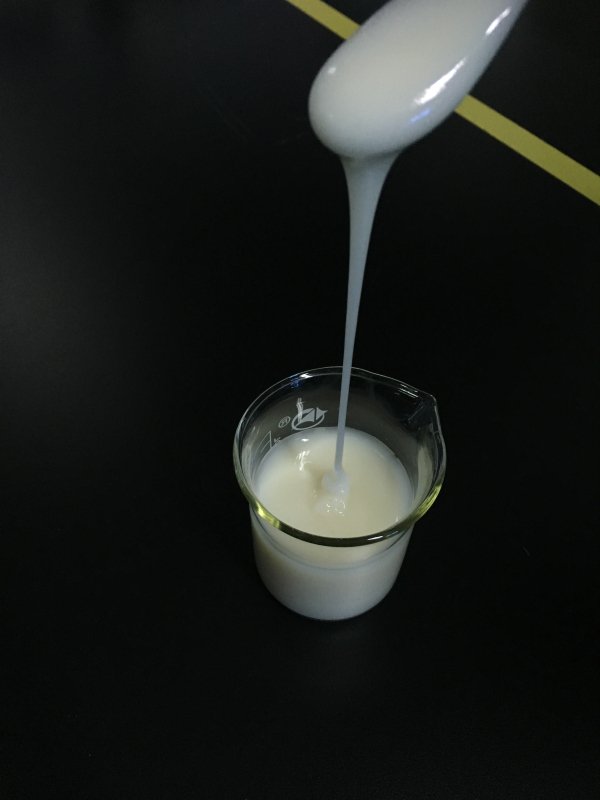 产品性状为浅黄色乳胶,无气味,易溶于水。