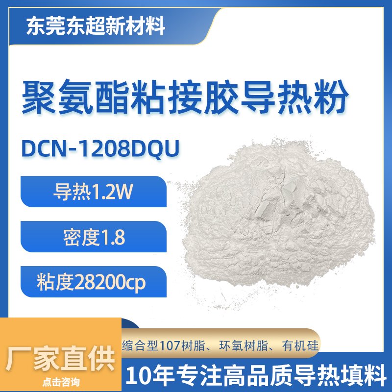 东超创新开发的 DCN-1208DQU 聚氨酯粘接胶改性导热粉体 ,这款产品经过最新的改性技术处理,可在A、B组份中同时使用,与树脂相容性优异,易均匀分散,且增稠幅度较小,使得粘接胶在达到目标导热率和比重的同时,能够保持良好的粘接强度。通过结构设计与界面协同技术,为轻量化粘接胶提供了全新突破路径。