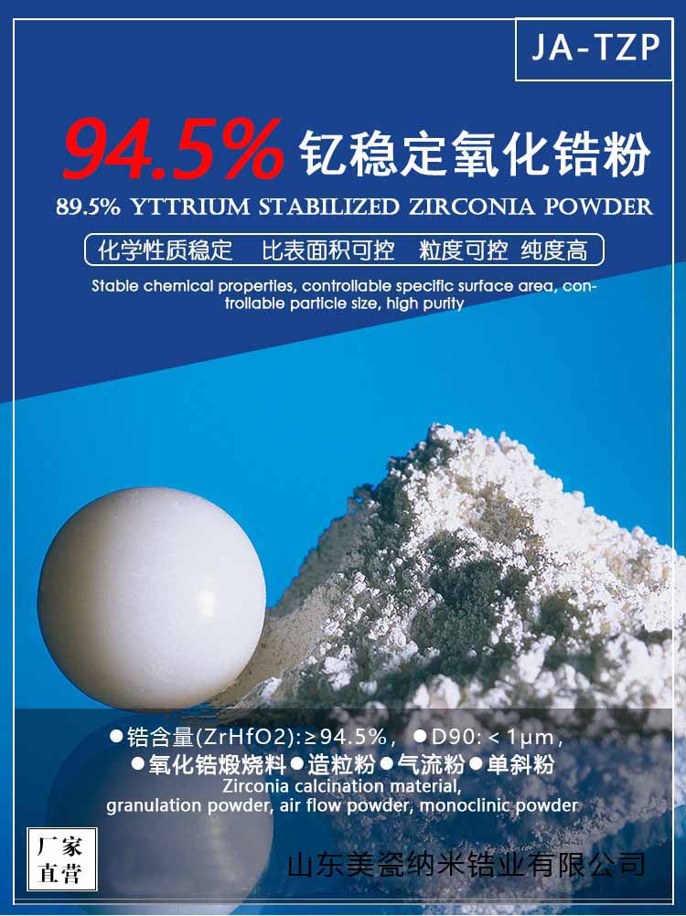 山东美瓷纳米锆业有限公司是国内专业的纳米二氧化锆粉体、钇稳定氧化锆生产厂家,生产的氧化锆系列产品所用原材料均是从澳洲进口,严把质量关,杂质少,锆含量高、质量稳定。可根据客户要求生产造粒粉、气流粉、煅烧粉、注塑粉。