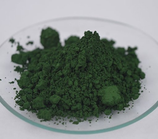 又称三氧化二铬、氧化铬,分子量151.99。系六方晶体,绿色粉末。不溶于水、酸及有机溶剂,稍溶于浓氢氧化钠溶液,溶于热的溴酸钠溶液、热的浓高氯酸溶液或沸腾的硫磷混酸。对光、大气、及腐蚀性气体(H2S、SO2等)极稳定,耐候性优良。遇热稳定,熔点2265℃,沸点3000℃,是优质的耐火材料。 用于冶炼金属铬和碳化铬,搪瓷、陶瓷、玻璃、人造革、耐火材料、建筑材料的着色、有机合成的催化剂、制造耐晒材料和印刷纸币的专用油墨、金属抛光研磨材料、金属表面渗铬、磁性材料等。用于涂料、陶瓷、橡胶、美术颜料、以及伪装涂料等。