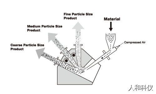 HIPREC分级机是利用柯恩达效应(Coanda effect(流体倾向于贴着表面流动)),可一次分出3种产品的气流分级机。