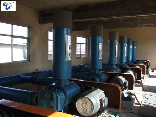 罗茨风机为容积式风机,输送的风量与转速成比例,三叶型叶轮每转动一次由2个叶轮进行3次吸、排气,与二叶型相比,气体脉动变少,负荷变化小,机械强度高。在2根平相行的轴上设有2个三叶型叶轮,轮与椭圆形机箱内孔面及各叶轮三者之间始终保持微小的间隙,由于叶轮互为反方向匀速旋转,使箱体和叶轮所包围着的一定量的气体由吸入的一侧输送到排出的一侧。各支叶轮始终由同步齿轮保持正确的相位,不会出现互相碰触现象,因而可以高速化,不需要内部润滑,而且结构简单,运转平稳,性能稳定,适应多种用途,已运用于广泛的领域。 通常污水处理系统上的罗茨风机、水泵都是电机以定速运转,再通过改变风机出口的阀门开度来调节风量或通过改变水泵出口管路上的调节阀开度来调节给水量。而风机和水泵的**特点是负载转矩与转速的平方成正比,而轴功率与转速的立方成正比,因此如将电机的定速运转改为根据需要的流量来调节电机的转速就可节约大量的电能。在污水处理系统中,罗茨风机的主要作用是给生化系统冲氧,使生化系统有充足的氧气,我们在生化池里放一个在线溶氧仪,在溶氧仪上设定水里需要的含氧量,把在线溶氧仪的数据送到PLC上,由PLC控制变频器,再由变频器控制罗茨风机,具有明显的节能效果。