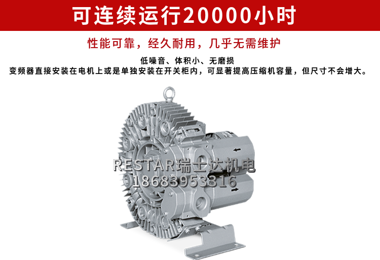 变频器直接安装在电机上或是单独安装在开关柜内,可显著提高压缩机容量,但尺寸不会增大。