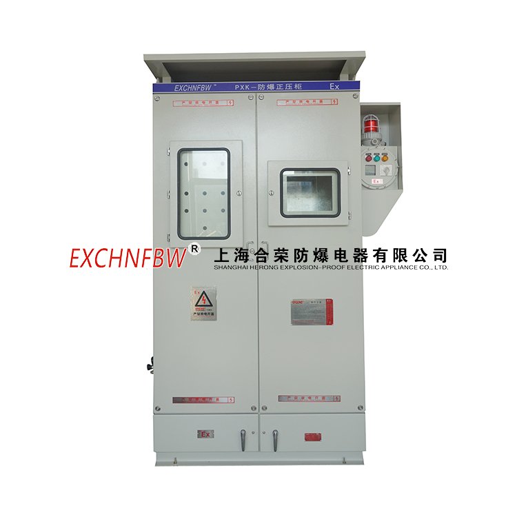 正压柜在自动控制系统的控制下,通入保护气体,正压腔内压力高于正压腔外的压力,形成微正压的安全小环境,从而阻止了可燃性危险气体进入正压腔内,保证内装普通仪表和电器元件的安全运行。