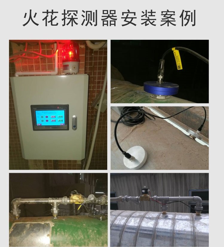 管道火花报警装置{火花探测熄灭系统}通过安装在输送管道壁的火花探头,有效地捕捉管道中引燃源(火花)发出的红外线,在随后相应距离(基于粉尘或拿证物料的输送速度)处,安装熄灭装置,快速启动高压大流量的雾化喷头,对引燃源(火花)熄灭并同时发出告警通知。广泛应用于木材加工、食品饲料研磨、烟草化工等行业中的材料输送和除尘系统。(如有产品需要,请电世纪行- 刘经理18962******,价格优惠。谢谢!)