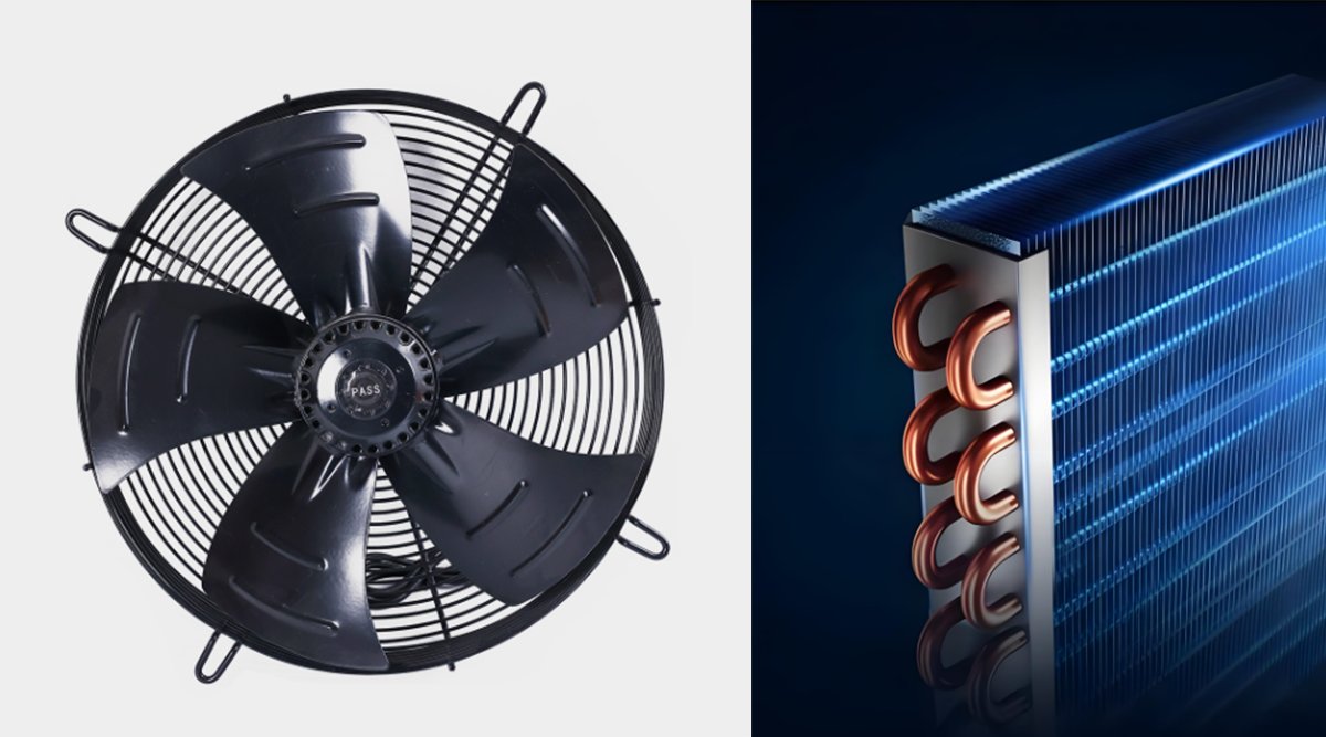 配置一流**外转子风机,更大的风量、更低噪音、更长的寿命,配合翅片式高效冷凝器,散热效果发挥到**。