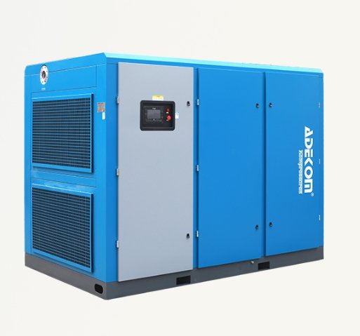 两级螺杆压缩主机,即将一级压缩螺杆转子和二级压缩螺杆转子组合在一个机壳里面,双级主机具有上下两级独立压缩单元,采用整体化设计,结构紧凑,刚性好。外界自然空气经过一级压缩后,在进入二级压缩之前采用雾化强制油冷,降低二级吸气温度,使得空气在整个压缩过程更接近等温压缩,提高压缩过程的绝热效率,降低压缩能耗。降温后的压缩空气进入第二级压缩腔,进行二次压缩到*终设计的排气压力;*后通过机头排气口排出,完成整个两级压缩过程。