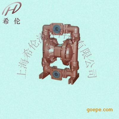 在隔膜泵的两个对称工作腔中,各装有一块有弹性的隔膜,联杆将两块隔膜结成一体,压缩空气从泵的进气接头后,推动两个工作腔内的隔膜,驱使联杆联接的两块隔膜同步运动。与此同时,另一工作腔中的气体则从隔膜的背后排出泵外。一旦到达行程终点。配气机构则自动地将压缩空气引入另一个工作腔,推动隔膜朝相反方向运动,这样就形成了两个隔膜的同步往复运动。每个工作腔中设置有两个单向球阀,隔膜的往复运动,造成工作腔内容积的改变,迫使两个单向球阀交替地开启和关闭,从而将液体连续地吸入和排出。