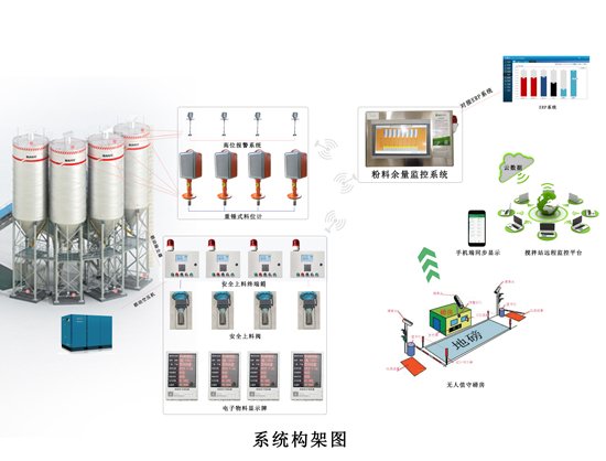 搅拌站生产过程中需要不断的补充筒仓中的物料,物料补充大多采用罐车+气力输送的方式,在上料前需要确认筒仓内装的物料,为避免“打错仓”引发建筑事故,搅拌站常常采用“两把锁”模式,即物料采购部门和磅房人员各拿一把钥匙,共同“比对开锁”,由于钥匙的一致性,很容易出现失误,且这样的管理模式效率低下。