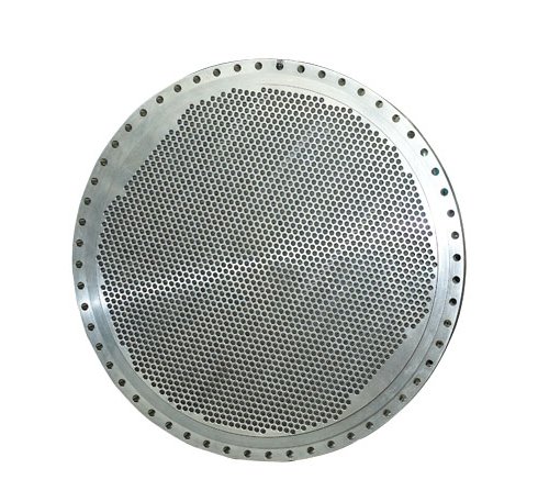 管板法兰根据需要使用环境的不同,使用不同的材质,一般使用Q345R的容器板,诸如一二级压力容器,无腐蚀介质流通,使用碳钢复合板即可。遇到强酸,高压高温,核能等环境就需要不锈钢,16锰,钛合金等耐腐蚀的材质,新型合成材料的应用,给管板制品带来新的生机。